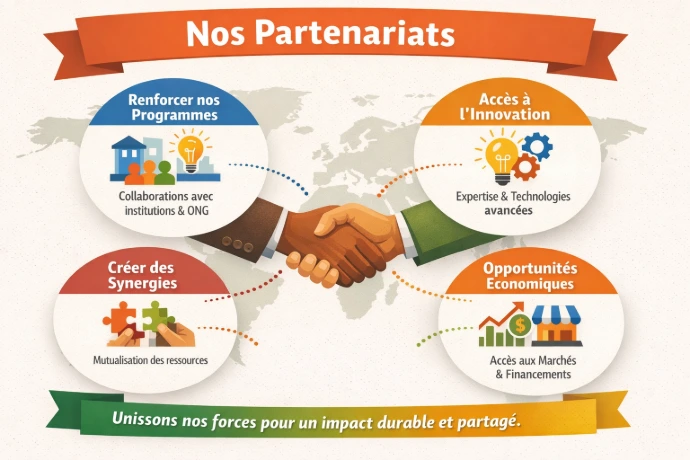 Nos collaborations avec des entreprises privées, institutions publiques, universités, centres de recherche, ONG, incubateurs et réseaux agricoles permettent de renforcer nos programmes et de créer des opportunités concrètes pour les PME, les coopératives, les jeunes et les femmes.